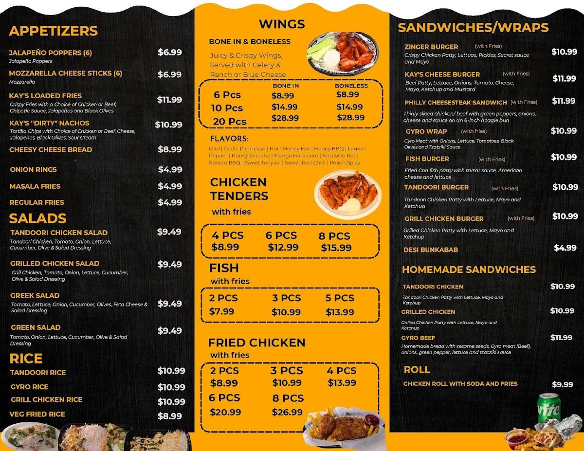 “ I had a chance last night to experience what Kay’s pizza is all about. I placed the order over the phone and I was told 20 mins for a large size order. To my surprise it was ready when I got there. Exceptional. The tandoori chicken pizza is mouth watering. I also tried their chicken wings mango habanero and Nashville hot. They both were delicious. I wish the Nashville hot would’ve been a little more spicier. Their tandoori chicken sandwich is amazing. Nachos were loaded with chicken. Cheese bread was amazing. I wish this place good luck and hope they maintain their standards in upcoming years. Great job guys. Thank you. ”